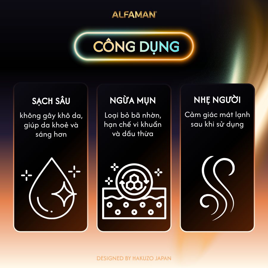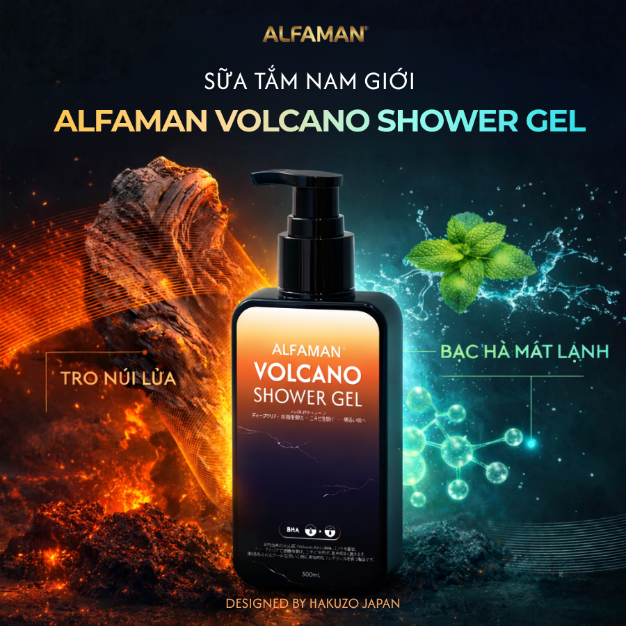 Alfaman Shower Gel là sự kết hợp hoàn hảo giữa 2 thành phần đối lập – tro núi lửa x chiết xuất bạc hà – trong 1 công thức tiên tiến từ Nhật Bản, mang đến hiệu quả làm sạch sâu, kiềm dầu, ngừa mụn, lát lạnh sảng khoái.